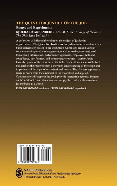 The basic concepts of justice in the workplace are introduced and discussed in this book. Using a variety of methods including questionnaires, laboratory studies and field experiments, issues such as impression management, performance appraisals, employee theft and compliance, and monetary and nonmonetary rewards are highlighted.