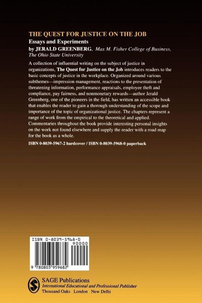 The basic concepts of justice in the workplace are introduced and discussed in this book. Using a variety of methods including questionnaires, laboratory studies and field experiments, issues such as impression management, performance appraisals, employee theft and compliance, and monetary and nonmonetary rewards are highlighted.