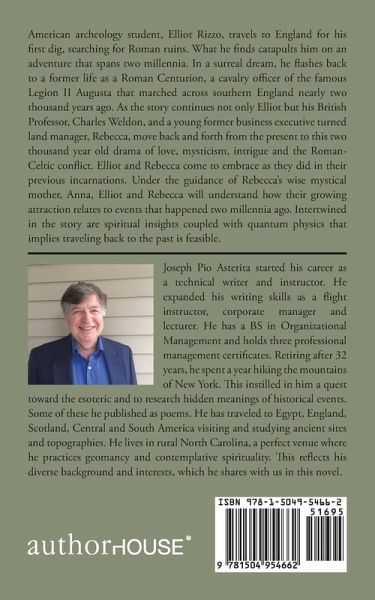 American archeology student, Elliot Rizzo, travels to England for his first dig, searching for Roman ruins. What he finds catapults him on an adventure that spans two millennia. In a surreal dream, he flashes back to a former life as a Roman Centurion, a cavalry officer of the famous Legion II Augusta that marched across southern England nearly two thousand years ago. As the story continues not only Elliot but his British Professor, Charles Weldon, and a young former business executive turned land manager, Rebecca, move back and forth from the present to this two thousand year old drama of love, mysticism, intrigue and the Roman-Celtic conflict. Elliot and Rebecca come to embrace as they did in their previous incarnations. Under the guidance of Rebecca's wise mystical mother, Anna, Elliot and Rebecca will understand how their growing attraction relates to events that happened two millennia ago. Intertwined in the story are spiritual insights coupled with quantum physics that implies traveling back to the past is feasible.