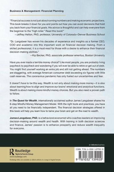 In The Quest for Wealth, internationally acclaimed author James Langabeer shares his 6-step Mindful Money Management Model. With the right tools and practices, you have all you need to be financially independent. The financial decision strategies offered in this book will help you learn how to tame your brain and get on the road to wealth.