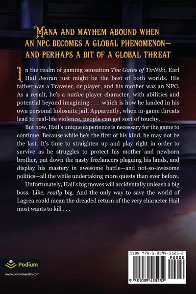 Mana and mayhem abound in this LitRPG fantasy adventure about an NPC who's become a global phenomenon-and perhaps a bit of a global threat. In the realm of gaming sensation The Gates of TirNiki, Earl Hail Jeoran just might be the best of both worlds. His father was a Traveler, or player, and his mother was an NPC. As a result, he's a native player character, with abilities and potential beyond imagining . . . which is how he landed in his own personal holosuite jail. Apparently, when in-game threats lead to real-life violence, people can get sort of touchy. But now, Hail's unique experience is necessary for the game to continue. Because while he's the first of his kind, he may not be the last. It's time to straighten up and play right in order to survive as he struggles to protect his mother and newborn brother, put down the nasty freelancers plaguing his lands, and display his mastery in awesome battle-and not-so-awesome politics-all the while undertaking more quests than ever before. Unfortunately, Hail's big moves will accidentally unleash a big boss. Like, really big. And the only way to save the world of Lagrea could mean the dreaded return of the very character Hail most wants to kill . . . The third volume of the hit LitRPG fantasy series-with almost 400,000 views on Royal Road-now available on Kindle, Kindle Unlimited, and Audible!