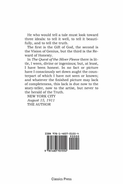 He who would tell a tale must look toward three ideals: to tell it well, to tell it beautifully, and to tell the truth. The first is the Gift of God, the second is the Vision of Genius, but the third is the Reward of Honesty. In The Quest of the Silver Fleece there is little, I ween, divine or ingenious; but, at least, I have been honest. In no fact or picture have I consciously set down aught the counterpart of which I have not seen or known; and whatever the finished picture may lack of completeness, this lack is due now to the story-teller, now to the artist, but never to the herald of the Truth. NEW YORK CITY August 15, 1911 THE AUTHOR