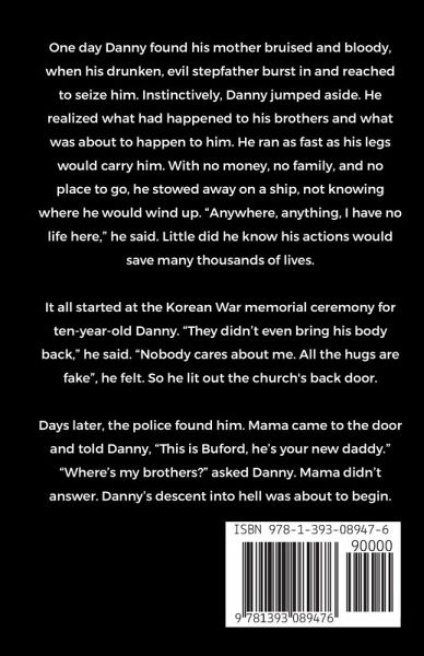 One day Danny found his mother bruised and bloody, when his drunken, evil stepfather burst in and reached to seize him. Instinctively, Danny jumped aside. He realized what had happened to his brothers and what was about to happen to him. He ran as fast as his legs would carry him. With no no money, no family, and no place to go, he stowed away on a ship, not knowing where he would wind up. "Anywhere, anything, I have no life here," he said. Little did he know his actions would save many thousands of lives. It all started at the Korean War memorial ceremony for ten-year-old Danny. "They didn't even bring his body back," he said. "Nobody cares about me. All the hugs are fake", he felt. So he lit out the church's back door. Days later, the police found him. Mama came to the door and told Danny, "This is Buford, he's your new daddy." "Where's my brothers?" asked Danny. Mama didn't answer. Danny's descent into hell was about to begin.