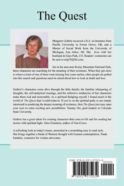 The quest is for the meaning of existence. A missing hiker brings questions about death and loss. Is there existence beyond death? The quest brings exciting new possibilities.