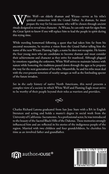 White Wolf¿an elderly shaman and Wicasäserves as his tribe¿s spiritual connection with the Grand Father. As shaman, he must prepare the way for his successor, who will be chosen through ancient rituals designed to reveal true character. As Wicasa, he can only wait for signs from the Great Spirit to know if one will replace him to lead the people in spirit during this trying time. While traveling homeward following a quest that had taken him far from his ancestral mountains, he receives a vision from the Grand Father telling him the name of the next Wicasa: Flaming Eagle, a name he does not recognize. He knows the four young men who are candidates to become shaman and must consider their achievements and character as they strive for manhood. Although plagued by emotions regarding the unknown, White Wolf strives to maintain balance with nature while honoring the traditions passed down through the ages as he prepares the way for the next generation of his tribe. Meanwhile, he and his tribe must deal with the ever-present terrorism of nearby savages as well as the foreboding specter of the future invaders. Set in the early history of native North Americans, this novel presents a complex view of a society in which White Wolf and Flaming Eagle must strive to be worthy of their people beyond their roles as warriors and providers.