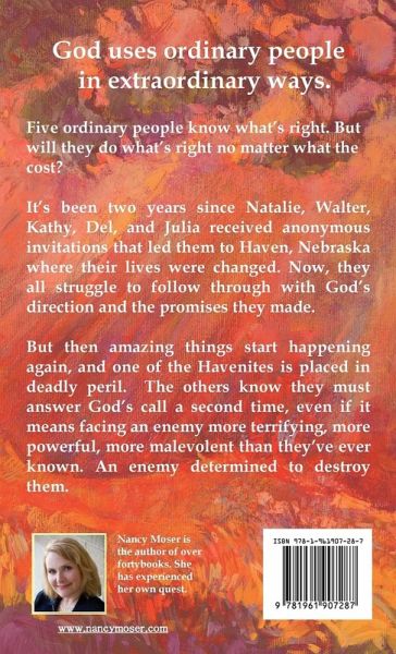 God can use ordinary people in extraordinary ways. Five ordinary people know what they should do. But will they do what's right no matter what the cost? It's been two years since Natalie, Walter, Kathy, Del, and Julia received anonymous invitations that led them to Haven, Nebraska where their lives were changed. Now, they all struggle to follow through with God's direction and the promises they made. But then amazing things start happening again, and one of the Havenites is placed in deadly peril. The others know they must answer God's call a second time, even if it means facing an enemy more terrifying, more powerful, more malevolent than they've ever known. An enemy determined to destroy them.