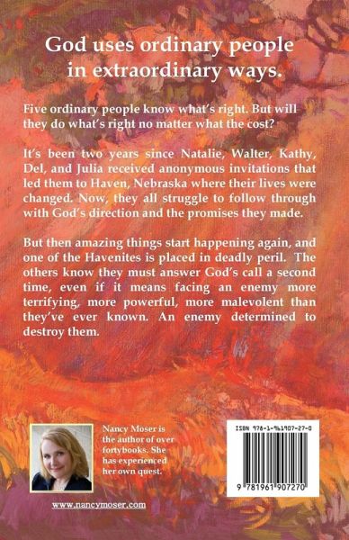 God can use ordinary people in extraordinary ways. Five ordinary people know what they should do. But will they do what's right no matter what the cost? It's been two years since Natalie, Walter, Kathy, Del, and Julia received anonymous invitations that led them to Haven, Nebraska where their lives were changed. Now, they all struggle to follow through with God's direction and the promises they made. But then amazing things start happening again, and one of the Havenites is placed in deadly peril. The others know they must answer God's call a second time, even if it means facing an enemy more terrifying, more powerful, more malevolent than they've ever known. An enemy determined to destroy them.