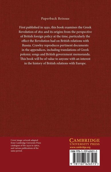 First published in 1930, this book examines the Greek Revolution of 1821 and its origins from the perspective of British foreign policy at the time, particularly the effect the Revolution had on British relations with Russia. Crawley reproduces pertinent documents in the appendices, including translations of Greek polemic songs and British government memoranda. This book will be of value to anyone with an interest in the history of British relations with Europe.