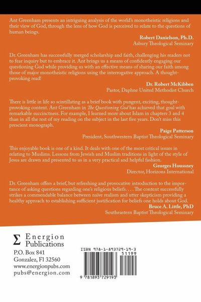 A questioning approach lies at the heart of our relationship with God. That's how God engages us. In fact, questioning (or free inquiry), is central to our being human. Yet the major monotheistic religions vary markedly on this matter. In The Questioning God, Dr. Greenham examines the three major monotheistic religions, Islam, Judaism, and Christianity, to see how they relate to questioning, including questions that God asks us and the questions that we ask about God. His goal is to develop a biblical theology of questioning, avoiding a loss of direction and focus that results from selective questioning, and also a loss of humanity that results from bypassing our questions through an inappropriate submission. The examination is wide ranging, including chapters on questioning in Islam, Judaism, mainline and evangelical Christianity, along with an examination of the consequences of a non-questioning culture. He ends the book with a proposal for a biblical theology and a look at the practical implications-just what it means to pursue a questioning culture.The author finds that questions are not just valuable, they are essential for serious human interaction. "As questioning beings," he concludes, "there is no limit to what we might ask, but our questions must always be anchored in the questioning God's enduring concern to engage us."