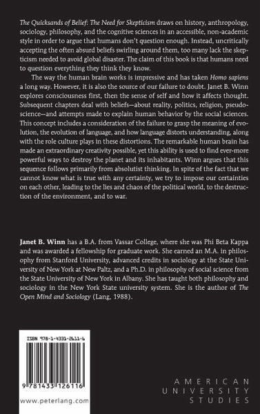 The Quicksands of Belief: The Need for Skepticism draws on history, anthropology, sociology, philosophy, and the cognitive sciences in an accessible, non-academic style in order to argue that humans don't question enough. Instead, uncritically accepting the often absurd beliefs swirling around them, too many lack the skepticism needed to avoid global disaster. The claim of this book is that humans need to question everything they think they know.