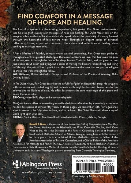 Find comfort in a message of hope and healing. The loss of a spouse is a devastating experience, but pastoral counselor Ron Greer invites readers into his own grief journey with messages of hope and healing. The Quiet House calls on the image of a home silenced by absence but also speaks about the possibility of moving forward together through the heartache of loss toward hope. Through an elegant series of personal reflections, Greer, a pastoral counselor, offers steps and reflections of healing while tending to marriage memories. Pastors may find this book a profound help and comfort for grieving members.