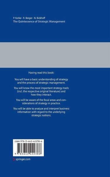 Having read this book: You will have a basic understanding of strategy and the process of strategic management. You will know the most important strategy tools (incl. the respective original literature) and how they interact. You will be aware of the focal areas and considerations of strategy in practice. You will be able to analyze and interpret business information with regard to the underlying strategic notions.