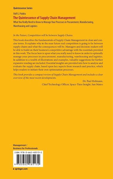 This book describes the fundamentals of Supply Chain Management in clear and concise terms. It explains why in the near future real competition is going to be between supply chains and what the consequences will be. Managers and decision-makers will be able to build on their business's competitive advantage with the essentials provided in this work. The focus here is upon what you really need to know in order to optimally manage your processes in procurement, manufacturing, warehousing and logistics. In addition to a wealth of illustrations and examples, valuable suggestions for further expansive reading are included. Essential insights are provided into how to analyse and evaluate the supply chain, based upon key aspects from research and practice, which helps readers to initiate their own optimisation processes.