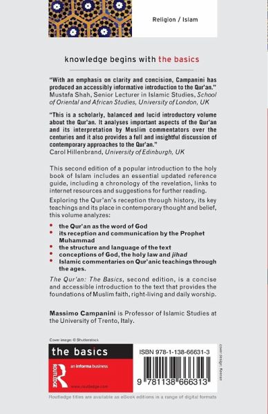 This second edition of a popular introduction to the Qur'an includes an essential updated reference guide, including a chronology of the revelation, links to internet resources, and suggestions for further reading. Exploring the Qur'an's reception through history, its key teachings, and its place in contemporary thought and belief, this volume analyzes: the Qur'an as the word of God; its reception and communication by the Prophet Muhammad; the structure and language of the text; conceptions of God, the holy law, and jihad; and Islamic commentaries on Qur'anic teachings through the ages. The Qur'an: The Basics, Second Edition is a concise and accessible introduction.