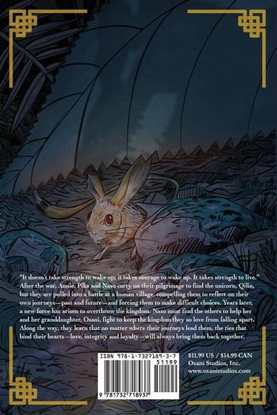 The sequel to the award-winning book, The Rabbit Princess: The Path. Journeys is an Award-Winning Finalist in two categories for the 2021 Next Generation Indie Book Awards: Children's/Juvenile Fiction and Young Adult Fiction Four 2021 Purple Dragonfly Book Awards: Honorable Mention - Young Adult Fiction, Honorable Mention - Middle Grade Fiction, Honorable Mention - Science Fiction/Fantasy, Honorable Mention - Chapter Book Award-Winning Finalist in the 2021 American Book Fest for Multicultural Fiction "It doesn't take strength to wake up; it takes courage to wake up. It takes strength to live." After the war, Annie, Pika and Naso carry on their pilgrimage to find the unicorn, Qilin, but they are pulled into a battle at a human village, compelling them to reflect on their own journeys-past and future-and forcing them to make difficult choices. Years later, a new force has arisen to overthrow the kingdom. Naso must find the others to help her and her granddaughter, Osani, fight to keep the kingdom they so love from falling apart. Along the way, they learn that no matter where their journeys lead them, the ties that bind their hearts-love, integrity and loyalty-will always bring them back together. Awards for book one, The Rabbit Princess: The Path Four 2019 Purple Dragonfly Book Awards: First Place - Young Adult Fiction, First Place - Chapter Book, Honorable Mention - Middle Grade Fiction, Honorable Mention - Science Fiction/Fantasy Award-Winning Finalist in the Children's Fiction category of the 2019 Best Book Awards sponsored by American Book Fest 2019 Independent Publisher Book Awards (IPPY) - Bronze Medal 2019 Fall Preview - Kirkus Reviews
