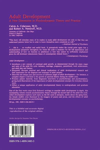 This is the second book in the pioneering investigation of adult develop ment by Robert A. Nemiroff and Calvin A. Colarusso. The first, Adult Development: A New Dimension in Psychodynamic Theory and Practice, ar rived to critical acclaim in 1981. It presented a psychodynamic theory of development during the second half of life and a model of normal adult functioning. This book is the logical sequel, expanding and elaborating the original formulations and applying them to the clinical practice of psychotherapy and psychoanalysis. Nemiroff and Colarusso demonstrate that these are appropriate techniques for patients in the second half of life, regardless of age. They lay to rest many stereotypes and myths that have long interfered with the dynamic treatment of older patients, and they propose exciting new conceptualizations such as that of adult develop mental arrests. The genetic approach reaches beyond childhood and adolescence and takes on important new meaning by incorporating an adult developmental past that influences both psychopathology and transference. The relationship between theory and therapy is richly demonstrated in the clinical presentations, including ten detailed case histories of pa tients between the ages of 40 and BO. These and other clinical discussions provide ample evidence that a psychodynamic approach that is based on a sound adult developmental psychology can be extraordinarily effective. They also demonstrate both the similarities and differences in working with older versus younger patients. This work is a major contribution in a long-neglected dimension of clinical psychiatry. SHERWYN M.