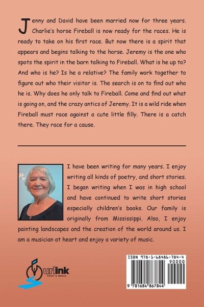 Jenny and David have been married now for three years. Charlie's horse Fireball is now ready for the races. He is ready to take on his first race. But now there is a spirit that appears and begins talking to the horse. Jeremy is the one who spots the spirit in the barn talking to Fireball. What is he up to? And who is he? Is he a relative? The family work together to figure out who their visitor is. The search is on to find out who he is. Why does he only talk to Fireball. Come and find out what is going on, and the crazy antics of Jeremy. It is a wild ride when Fireball must race against a cute little filly. There is a catch there. They race for a cause.