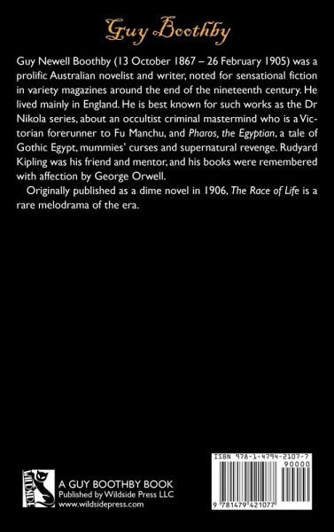 Guy Newell Boothby (13 October 1867 - 26 February 1905) was a prolific Australian novelist and writer, noted for sensational fiction in variety magazines around the end of the nineteenth century. He lived mainly in England. He is best known for such works as the Dr Nikola series, about an occultist criminal mastermind who is a Victorian forerunner to Fu Manchu, and Pharos, the Egyptian, a tale of Gothic Egypt, mummies' curses and supernatural revenge. Rudyard Kipling was his friend and mentor, and his books were remembered with affection by George Orwell. Originally published as a dime novel in 1906, "The Race of Life" is a rare melodrama of the era.
