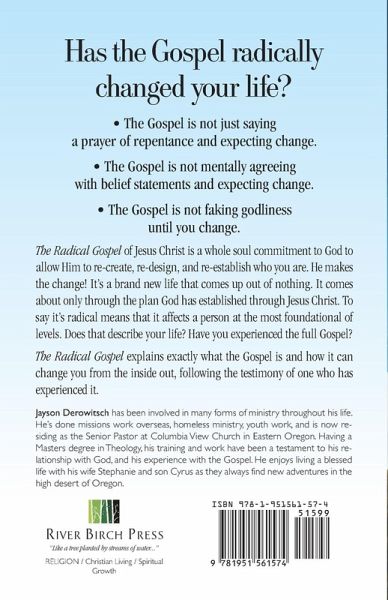 Has the Gospel radically changed your life? ¿ The Gospel is not just saying a prayer of repentance and expecting change. ¿ The Gospel is not mentally agreeing with belief statements and expecting change. ¿ The Gospel is not faking godliness until you change. The Radical Gospel of Jesus Christ is a whole soul commitment to God to allow Him to re-create, re-design, and re-establish who you are. He makes the change! It's a brand new life that comes up out of nothing. It comes about only through the plan God has established through Jesus Christ. To say it's radical means that it affects a person at the most foundational of levels. Does that describe your life? Have you experienced the full Gospel? The Radical Gospel explains exactly what the Gospel is and how it can change you from the inside out, following the testimony of one who has experienced it.