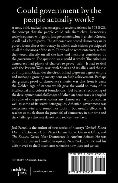 A new, bold, radical idea emerged in ancient Athens in 508 BCE, the concept that the people could rule themselves. Democracy today is equated with good, just government, but in ancient Greece, it still had a lot to prove. The Athenians embraced democracy in its purest form: direct democracy in which each citizen participated in all the decisions of the state. They had no representatives; rather, they voted directly on all the laws and measures considered by the government. The question was: could it work? The Athenian democracy had plenty of chances to prove itself. It had to deal with the Persian Wars, wars with Sparta and its allies, and the rise of Philip and Alexander the Great. It had to govern a great empire and manage a growing society bent on high achievement. Perhaps the greatest proof of democracy's merits was that from it came the Golden Age of Athens which gave the world so many of its intellectual and cultural foundations. Joel Farrell's recounting of the development and challenges of Athenian democracy is peopled by some of the greatest leaders any democracy has produced, as well as some of its worst demagogues. Athenian government was sometimes wise and sometimes foolish, but usually effective. It teaches us much about the potential of democracy in our time and the challenges that any democratic society must face.