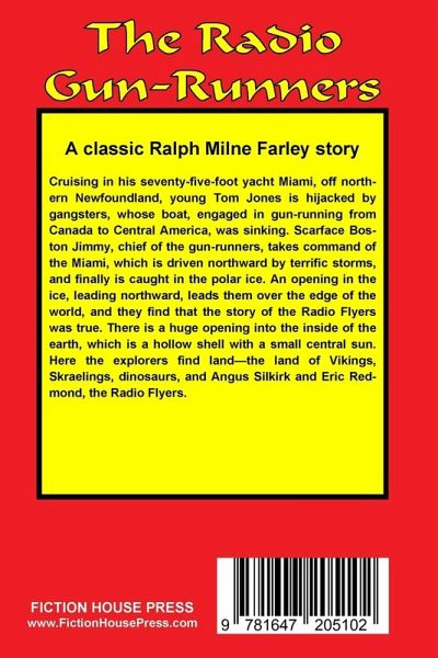 Cruising in his seventy-five-foot yacht Miami, off northern Newfoundland, young Tom Jones is hijacked by gangsters, whose boat, engaged in gun-running from Canada to Central America, was sinking. Scarface Boston Jimmy, chief of the gun-runners, takes command of the Miami, which is driven northward by terrific storms, and finally is caught in the polar ice. An opening in the ice, leading northward, leads them over the edge of the world, and they find that the story of the Radio Flyers was true. There is a huge opening into the inside of the earth, which is a hollow shell with a small central sun. Here the explorers find land-the land of Vikings, Skraelings, dinosaurs, and Angus Silkirk and Eric Redmond, the Radio Flyers. A sequel to THE RADIO FLYERS.