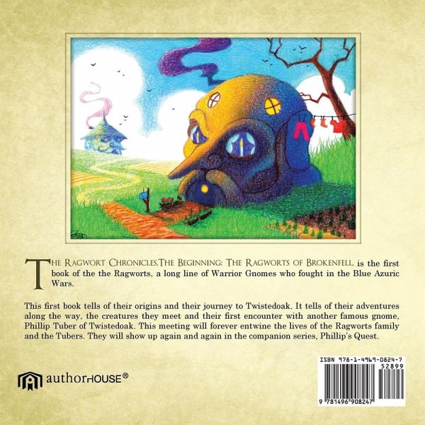 The Ragwort Chronicles,The Beginning: The Ragworts of Brokenfell, is the first book of the the Ragworts, a long line of Warrior Gnomes who fought in the Blue Azuric Wars. This first book tells of their origins and their journey to Twistedoak. It tells of their adventures along the way, the creatures they meet and their first encounter with another famous gnome, Phillip Tuber of Twistedoak. This meeting will forever entwine the lives of the Ragworts family and the Tubers. They will show up again and again in the companion series, Phillip's Quest.