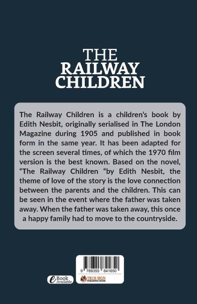 The Railway Children is a children's book by Edith Nesbit, originally serialised in The London Magazine during 1905 and published in book form in the same year. It has been adapted for the screen several times, of which the 1970 film version is the best known. Based on the novel, "The Railway Children "by Edith Nesbit, the theme of love of the story is the love connection between the parents and the children. This can be seen in the event where the father was taken away. When the father was taken away, this once a happy family had to move to the countryside.