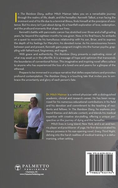 Dr. Mitch Maiman is a retired physician with a distinguished academic, clinical and research career. He has been recognized for his numerous educational contributions in his field and his devotion and commitment to the teaching of residents and fellows. In The Rainbow Diary, he explores profound themes and delicate content, and blends his medical expertise with creative storytelling, offering a unique perspective on the journey of dying and the hereafter.Mitch lives in Long Island, New York, and is an avid tennis player and practitioner of yoga. He first demonstrated his literary prowess in his eye-opening novel, Every Third Night, delving into the harsh realities of medical training in a dehumanizing, urban setting.