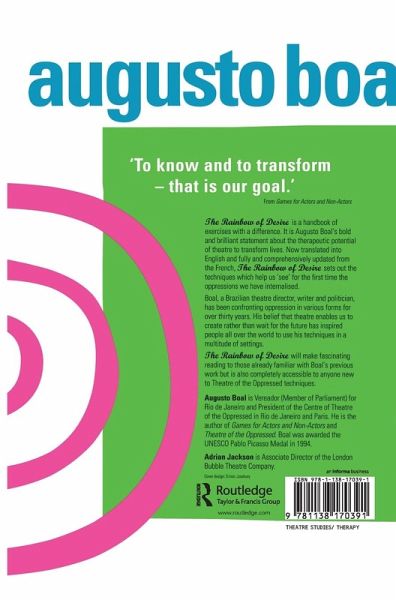More than a handbook of exercises - a bold and brilliant statement of theatre's therapeutic capacity to liberate people and change lives. Boal shows us how to 'see' for the first time the oppressions we have internalized.