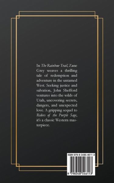 In The Rainbow Trail, Zane Grey weaves a thrilling tale of redemption and adventure in the untamed West. Seeking justice and salvation, John Shefford ventures into the wilds of Utah, uncovering secrets, dangers, and unexpected love. A gripping sequel to Riders of the Purple Sage, it's a classic Western masterpiece.