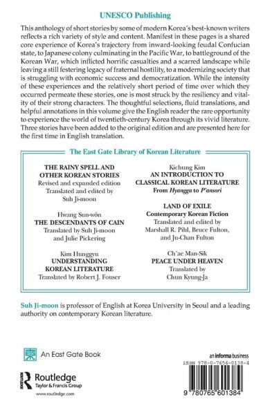 This anthology of short stories reflects the writers' shared core experience of Korea's trajectory from an inward-looking feudal state, through Japanese colony and battle-ground for the Korean War, to a modernizing society. Three stories have been added to the original edition.