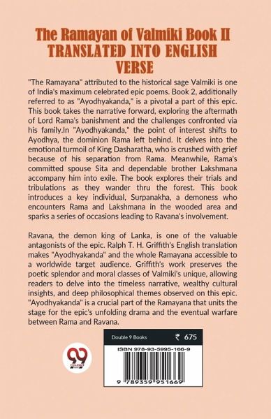 "The Ramayana" attributed to the historical sage Valmiki is one of India's maximum celebrated epic poems. Book 2, additionally referred to as "Ayodhyakanda," is a pivotal a part of this epic. This book takes the narrative forward, exploring the aftermath of Lord Rama's banishment and the challenges confronted via his family.In "Ayodhyakanda," the point of interest shifts to Ayodhya, the dominion Rama left behind. It delves into the emotional turmoil of King Dasharatha, who is crushed with grief because of his separation from Rama. Meanwhile, Rama's committed spouse Sita and dependable brother Lakshmana accompany him into exile. The book explores their trials and tribulations as they wander thru the forest. This book introduces a key individual, Surpanakha, a demoness who encounters Rama and Lakshmana in the wooded area and sparks a series of occasions leading to Ravana's involvement. Ravana, the demon king of Lanka, is one of the valuable antagonists of the epic. Ralph T. H. Griffith's English translation makes "Ayodhyakanda" and the whole Ramayana accessible to a worldwide target audience. Griffith's work preserves the poetic splendor and moral classes of Valmiki's unique, allowing readers to delve into the timeless narrative, wealthy cultural insights, and deep philosophical themes observed on this epic. "Ayodhyakanda" is a crucial part of the Ramayana that units the stage for the epic's unfolding drama and the eventual warfare between Rama and Ravana.