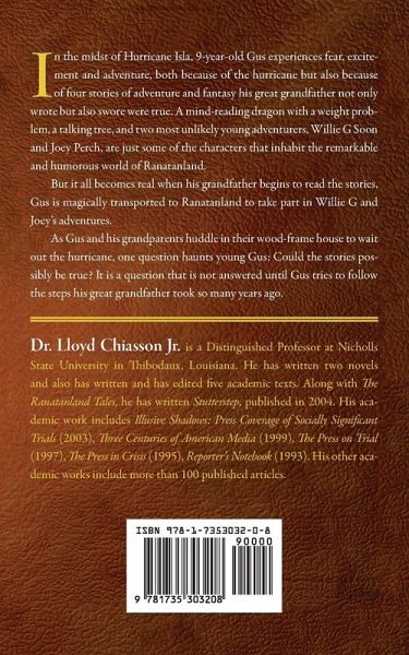 In the midst of Hurricane Isla, 9-year-old Gus experiences fear, excitement, and adventure, both because of the hurricane but also because of four stories of adventure and fantasy his great grandfather not only wrote but also swore were true. A mind-reading dragon with a weight problem, a talking tree, and two most unlikely young adventurers, Willie G Soon and Joey Perch, are just some of the characters that inhabit the remarkable and humorous world of Ranatanland. But it all becomes real when his grandfather begins to read the stories, Gus is magically transported to Ranatanland to take part in Willie G and Joey's adventures. As Gus and his grandparents huddle in their wood-frame house to wait out the hurricane, one question haunts young Gus: Could the stories possibly be true? It is a question that is not answered until Gus tries to follow the steps his great grandfather took so many years ago.