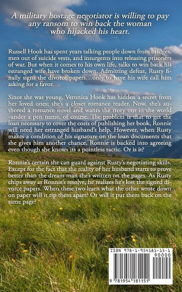 A military hostage negotiator is willing to pay any ransom to win back the woman who hijacked his heart. Russell Hook has spent years talking people down from bridges, men out of suicide vests, and insurgents into releasing prisoners of war. But when it comes to his own life, talks to win back his estranged wife have broken down. Admitting defeat, Rusty finally signs the divorce papers...only to have his wife call him asking for a favor. Since she was young, Veronica Hook has hidden a secret from her loved ones; she's a closet romance reader. Now, she's authored a romance novel and wants the story out in the world -under a pen name, of course. The problem is that to get the loan necessary to cover the costs of publishing her book, Ronnie will need her estranged husband's help. However, when Rusty makes a condition of his signature on the loan documents that she gives him another chance, Ronnie is backed into agreeing even though she knows its a pointless tactic. Or is it? Ronnie's certain she can guard against Rusty's negotiating skills. Except for the fact that the reality of her husband starts to prove better than the dream man she's written on the pages. As Rusty chips away at Ronnie's resolve, he realizes he's lost the signed divorce papers. When these two learn what the other wrote down on paper will it rip them apart? Or will it put them back on the same page?