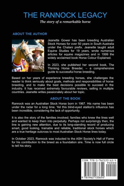 This is the story of a remarkable horse. Rannock was an Australian Stock Horse born in 1967.His name has been under the radar for a long time. Yet this blind-eyed stallion's influence has been incredible, considering the lack of opportunity. It is also the story of the families involved; families who knew the lines well and wanted to keep them into perpetuity. Perhaps not surprisingly then, the line is gaining new attention, due to its long-standing record of producing smart, good looking, trainable and reliable, traditional stock horses which are a true heritage outcross to most Australian Stock Horse lines today. In October 2023, Rannock was inducted to the Australian Stock Horse Society's Hall of Fame for his contribution to the breed as a foundation sire.Time is now full circle to tell his story.