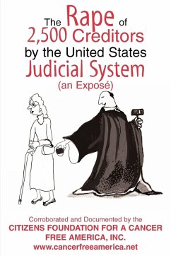The Rape Of 2,500 Creditors By The United States Judicial System exposes what occurs when legal procedures are misused by judges and lawyers. A Cancer Foundation was denied $75 million, to develop the use of alternative medicine to cure cancer. One third of all European cancer patients successfully use alternative medicine. The Foundation has analyzed the legal system. It describes what occurred when a chief executive became ill with pancreatic cancer and was unable to function, and sets forth what can happen to investors, creditors, and even family members. The Constitution of the United States and various laws passed by Congress do not always provide the intended protection. The Exposé points out that the legal system needs much reform. This is a document that should be read by every cancer patient, every individual that believes he or she was mistreated by the judiciary and by every retired senior citizen who is financially dependent on his or her retirement funds. The Citizens Foundation for a Cancer Free America, Inc. P. O. Box 805 Arnold, MD 21012 Telephone #: 410-349-4868