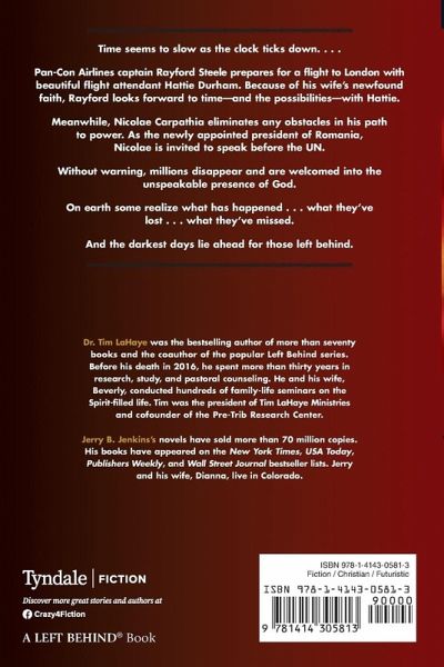 In this the final prequel to the blockbuster series, the story features the Rapture three-quarters of the way through the book and then follows characters such as Irene and Raymie (and others) up to heaven, where they are able to see events in the Tribulation from heaven's perspective. The story alternates between events on earth immediately after the Rapture (covering lots of things the authors wished they could have covered in the original volumes) and characters in heaven and how they view the chaotic events on earth.