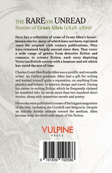 Here lies a collection of some of Grant Allen's lesserknown stories, many of which have not been reprinted since the original 19th century publications. They have remained largely unread since then. They cover a wide range of genres from detective fiction and romance, to science fiction, each story depicting Victorian British society with a humour and wit which has stood the test of time. Charles Grant Blairfindie Allen was a prolific and versatile writer. An Oxford graduate, Allen had a gift for writing and earned himself quite a reputation, on anything from physics and botany, to interior design and travel. During his career in writing fiction, which he frequently claimed he stumbled into, he wrote more than two hundred short stories, along with numerous novels and poetry. His works were published in some of the biggest magazines of the time, including the Cornhill and Belgravia. Despite an initially hostile attitude toward the medium, Allen became truly involved with much of his fiction.