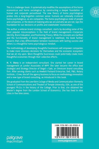 This is a challenger book. It systematically modifies the assumptions of the homo economicus and homo sociologicus by constructing a deeper foundation of human and corporate personhood. The new theory of homo psychologicus probes into a long-forgotten common sense: humans are rationally irrational homo psychologicus, as are companies. The homo psychologicus state of people and companies, or the desire of realizing who we are and who we are not, lays the foundation for our decisions on profits and stakeholder relationships.