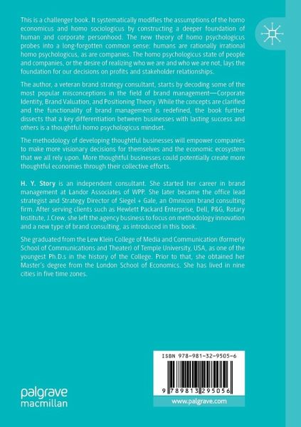This is a challenger book. It systematically modifies the assumptions of the homo economicus and homo sociologicus by constructing a deeper foundation of human and corporate personhood. The new theory of homo psychologicus probes into a long-forgotten common sense: humans are rationally irrational homo psychologicus, as are companies. The homo psychologicus state of people and companies, or the desire of realizing who we are and who we are not, lays the foundation for our decisions on profits and stakeholder relationships.