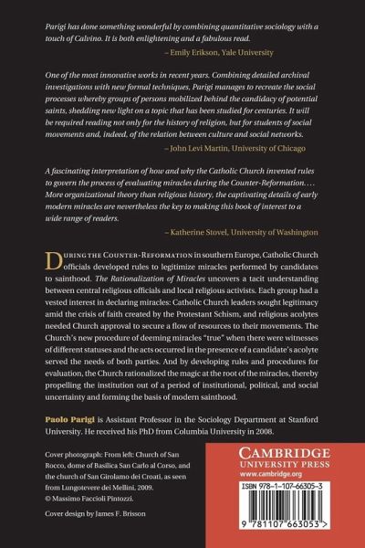 During the Counter-Reformation in southern Europe, Catholic Church officials developed rules to legitimize miracles performed by candidates to sainthood. The Rationalization of Miracles uncovers a tacit understanding between central religious officials and local religious activists. Each group had a vested interest in declaring miracles: Catholic Church leaders sought legitimacy in the wake of the crisis of faith created by the Protestant Schism and religious acolytes needed Church approval to secure a flow of resources to their movements. The Church's new procedure of deeming miracles 'true' when there were witnesses of different statuses and the acts occurred in the presence of a candidate's acolyte served the needs of both parties. And by developing rules and procedures for evaluating miracles, the Church rationalized the magic at the root of the miracles, thereby propelling the institution out of a period of institutional, political and social uncertainty and forming the basis of modern sainthood.