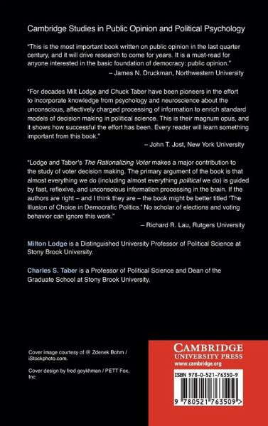 Political behavior is the result of innumerable unnoticed forces and conscious deliberation is often a rationalization of automatically triggered feelings and thoughts. Citizens are very sensitive to environmental contextual factors such as the title 'President' preceding 'Obama' in a newspaper headline, upbeat music or patriotic symbols accompanying a campaign ad, or question wording and order in a survey, all of which have their greatest influence when citizens are unaware. This book develops and tests a dual-process theory of political beliefs, attitudes and behavior, claiming that all thinking, feeling, reasoning and doing have an automatic component as well as a conscious deliberative component. The authors are especially interested in the impact of automatic feelings on political judgments and evaluations. This research is based on laboratory experiments, which allow the testing of five basic hypotheses: hot cognition, automaticity, affect transfer, affect contagion and motivated reasoning.