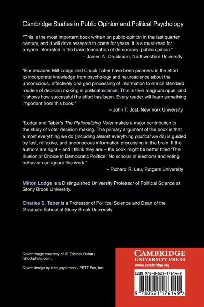 Political behavior is the result of innumerable unnoticed forces and conscious deliberation is often a rationalization of automatically triggered feelings and thoughts. Citizens are very sensitive to environmental contextual factors such as the title 'President' preceding 'Obama' in a newspaper headline, upbeat music or patriotic symbols accompanying a campaign ad, or question wording and order in a survey, all of which have their greatest influence when citizens are unaware. This book develops and tests a dual-process theory of political beliefs, attitudes and behavior, claiming that all thinking, feeling, reasoning and doing have an automatic component as well as a conscious deliberative component. The authors are especially interested in the impact of automatic feelings on political judgments and evaluations. This research is based on laboratory experiments, which allow the testing of five basic hypotheses: hot cognition, automaticity, affect transfer, affect contagion and motivated reasoning.