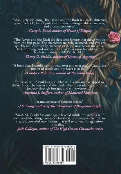 One raven. One boy. One destiny. Escape into this story of fractured duty and forbidden love weaving together a fate bigger than man, bigger than magic. Evrathedyn Blackrook whiles his days away at university, blissfully oblivious to the horrors afflicting his homeland. He escapes into dusty books, content as a second son. Rhosynora Ravenwood spends her sleepless nights fantasizing of ways to escape her icy, suffocating dynasty. To flee her birthright is to invite a traitor's penance. To stay is another kind of death. But time and fate have a way of mending all mistakes. Evra soon finds himself the new Lord Blackrook. His inheritance is a plague-ridden land, the pyres from his late father's campaign against magic still smoldering. His realm's future in the balance, he travels beyond his borders to a remote northern hamlet, where he meets Rhosyn. The spark between them is immediate; the suspicion even stronger. In Rhosyn, Evra sees her rare magic as the perfect answer to his troubles. In Evra, Rhosyn sees everything wrong with the depraved world of men. But Evra is out of options. And Rhosyn is out of time. As they resist the undeniable, forbidden bond growing between them, Evra's dawning horror of Rhosyn's fate brings him to an impossible choice. His home, or her? __ The Book of All Things is a series of standalone fantasy romance tales set in the vibrant, epic world first introduced by USA Today Bestselling Author Sarah M. Cradit in the Kingdom of the White Sea trilogy. The Raven and the Rush is the first story in the Blackwood Cycle of The Book of All Things. The Blackwood Cycle: Forbidden love, second chances, found family, and the Rise of House Blackwood (low heat) The Raven and the Rush The Priestess and the Paladin And more