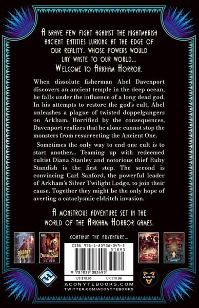 A nightmarish power unleashed from the depths infiltrates Arkham in this nautical-horror pulp adventure from the acclaimed Arkham Horror game world. When dissolute fisherman Abel Davenport discovers an ancient temple in the deep ocean, he under the influence of a long dead god. In his attempts to restore the god's cult, Abel unleashes a plague of twisted doppelgangers on Arkham. Horrified by the consequences, Davenport realizes that he alone cannot stop the monsters from resurrecting the Ancient One. Sometimes the only way to end one cult is to start another... Teaming up with redeemed cultist Diana Stanley and notorious thief Ruby Standish is the first step. The second is convincing Carl Sanford, the powerful leader of Arkham's Silver Twilight Lodge, to join their cause. Together they might be the only hope of averting a cataclysmic eldritch invasion.