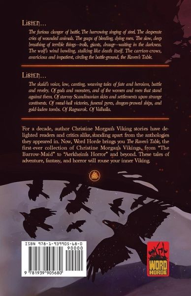 Listen... The furious clangor of battle. The harrowing singing of steel. The desperate cries of wounded animals. The gasps of bleeding, dying men. The slow, deep breathing of terrible things--trolls, giants, draugr--waiting in the darkness. The wolf's wind howling, stalking like death itself. The carrion-crows, avaricious and impatient, circling the battle-ground, the Raven's Table. Listen... The skald's voice, low, canting, weaving tales of fate and heroism, battle and revelry. Of gods and monsters, and of the women and men that stand against them. Of stormy Scandinavian skies and settlements upon strange continents. Of mead-hall victories, funeral pyres, dragon-prowed ships, and gold-laden tombs. Of Ragnarok. Of Valhalla. For a decade, author Christine Morgan's Viking stories have delighted readers and critics alike, standing apart from the anthologies they appeared in. Now, Word Horde brings you The Raven's Table, the first-ever collection of Christine Morgan's Vikings, from "The Barrow-Maid" to "Aerkheim's Horror" and beyond. These tales of adventure, fantasy, and horror will rouse your inner Viking.