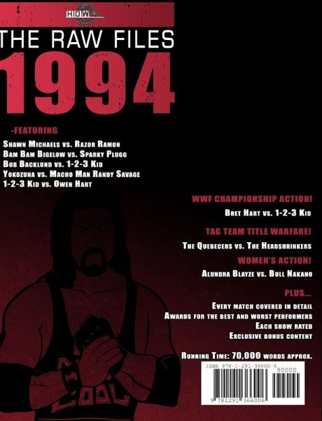 The team at www.historyofwrestling.info are back with the second in their series documenting every episode of WWF Monday Night Raw, year by year. We cover every angle, segment and match in detail, and offer plenty of thoughts and interesting facts along the way. The book is written and presented in the usual HOW style, with various awards, match and show lists and a host of star ratings for fans to debate at will. Learn about Tatanka's ill-advised heel turn, the madness of the Macho Man on commentary, the WWF's struggle to come to terms with the departure of key stars as the New Generation took hold, Vince McMahon's obsession with Roseanne Barr, Chris Kanyon and the Hardy Boyz as enhancement talent, the rise to prominence of the 1-2-3 Kid and Bob Backlund locking the Crossface Chicken-wing on everyone in sight. Plus much, much more in an action packed, fun-filled 100 page, 70,000 word + tome.
