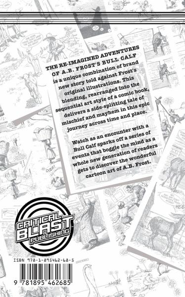 The Re-Imagined Adventures of A.B. Frost's Bull Calf is a unique combination of brand new story told against Frost's original illustrations. This blending, rearranged into the sequential art style of a comic book, delivers a side-splitting tale of mischief and mayhem in this epic journey across time and place. Watch as an encounter with a Bull Calf sparks off a series of events that boggle the mind as a whole new generation of readers get to discover the wonderful cartoon art of A.B. Frost.