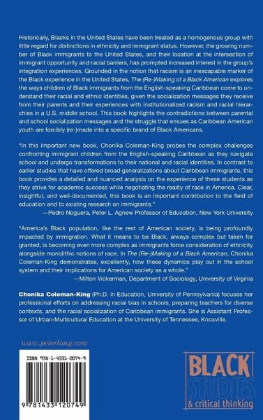Historically, Blacks in the United States have been treated as a homogenous group with little regard for distinctions in ethnicity and immigrant status. However, the growing number of Black immigrants to the United States, and their location at the intersection of immigrant opportunity and racial barriers, has prompted increased interest in the group's integration experiences. Grounded in the notion that racism is an inescapable marker of the Black experience in the United States, The (Re-)Making of a Black American explores the ways children of Black immigrants from the English-speaking Caribbean come to understand their racial and ethnic identities, given the socialization messages they receive from their parents and their experiences with institutionalized racism and racial hierarchies in a U.S. middle school. This book highlights the contradictions between parental and school socialization messages and the struggle that ensues as Caribbean American youth are forcibly (re-)made into a specific brand of Black Americans.