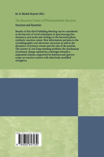 1: Crystallographic and Electronic Structure.- Crystallization and Structure of the Photosynthetic Reaction Centres from Rhodobacter sphaeroides - Wild Type and Mutants.- The Crystal Structure of Allophycocyanin and its Comparison to C-Phycocyanin and b-Phycoerythrin.- New Insights into the X-Ray Structure of the Reaction Center form Rhodopseudomonas viridis.- Effect of Orbital Asymmetry in P·+ on Electron Transfer in Reaction Centers of Rb. sphaeroides.- ENDOR on the Primary Electron Donor Cation Radical of Heterodimer-Double-Mutants of Rb. sphaeroides. Effect of Hydrogen Bonding on the Electronic Structure of Bacteriochlorophyll ?-type Radicals.- Structure Information on the Bacterial Primary Donor P+·, Acceptor $$ Q_A^{{ - cdot }} $$, and Radical Pair P+·-$$ Q_A^{{ - cdot }} $$ as Obtained form High-Field EPR/ENDOR and MO Studies.- Molecular Triads that Mimic the Spin-Polarized Triplet State in Photosynthetic Reaction Centers.- Quantum Calculations for the Special Pair Dimer and for Heterodimers: Analysis of the Charge Transfer States.- Macroscopic and Microscopic Estimates of the Energetics of Charge Separation in Bacterial Reaction Centers.- Electron Transfer in Proteins: Beyond the Single Pathway Approach.- The Role of the Protein in the Stabilization of the Charge Separated States in Photosynthetic Reaction Centers.- Shifts of the Special Pair Redox Potential of Mutants of Rhodobactersphaeroides Calculated with DelPhi and CHARMM Energy Functions.- 2: Dynamics of Primary Events and the Role of Protein.- The First Femtoseconds of Primary Photosynthesis - The Processes of the Initial Electron Transfer Reaction.- Femtosecond Kinetics of Special Pair Bleaching and Electron Transfer in Rhodobacter sphaeroides Reaction Centers.- Ultrafast Energy Transferwithin the Bacterial Photosynthetic Reaction Centers.- Slow Charge Separation in a Minority of Reaction Centers Correlated with a Blueshift of theP860-Band in Rb. sphaeroides.- Reaction Centers Heterogeneity Probed by Mutlipulse Photoselection Experiments with Picosecond Time Resolution.- Characteristics of the Electron Transfer Reaction in the M21OW Reaction Centre only Mutant of Rhodobacter sphaeroides.- Ultrafast Electron and Excitation Energy Transfer in Modified Photosynthetic Reaction Centers from Rhodobacter sphaeroides.- Pressure Dependence of Energy and Electron Transfer in Photosynthetic Complexes.- Femtosecond Spectroscopy and Vibrational Coherence of Membrane-Bound RCs of Rhodobacter sphaeroides Genetically Modified at Position M210 and L181.- Femtosecond Infrared Spectroscopy on Reaction Centers of Rb. Sphaeroides.- Energetics of the Primary Charge Separation in Bacterial Photosynthesis.- Effects of Static Heterogeneity on the Parallel-Sequential-Superexchange Mechanism for the Primary Charge Separation in Bacterial Photosynthesis.- Structural and Functional Properties of the State P+· Q-· from Transient EPR Spectroscopy.- Light-Induced Changes in Transient EPR Spectra of $$ P_{{865}}^{{ + cdot }}Q_A^{{ - cdot }} $$.- Quantum Beats as Probe of the Primary Events in Bacterial Photosynthesis.- Asymmetry of the Binding Sites of $$ Q_A^{{ - cdot }} $$ and $$ Q_B^{{ - cdot }} $$ in Reaction Centers of Rb. sphaeroides Probed by Q-Band EPR with 13C-Labeled Quinones.- Alternate Reaction Center Acceptors: Spectral Signatures and Redox Properties of Pheoporphyrin, Zinc and Copper Bacteriochlorin Anion Radicals.- Protein-Quinone Interactions in Photosynthetic Bacterial Reaction Centers Investigated by Light-Induced FTIR Difference Spectroscopy.- FTIRSpectroscopic Characterization of the QA and QB Binding sites in Rhodobacter sphaeroides R26 Reaction Centers.- Site-Directed Isotope Labelling as a Tool in Spectroscopy of Photosynthetic Preparations. Investigations on Quinone Binding in Bacterial Reaction Centers.- Index of Authors.